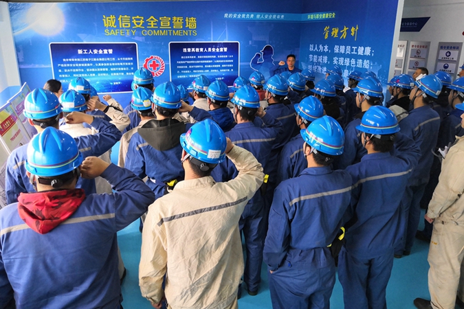 On March 27th, the Safety Experience Center, located on the third floor of the Group Training and Education Center, was officially completed and put into use. Today, the Safety and Environment Department conducted a security experience training for 132 new intern trainees in the New Yangzi Shipyard.