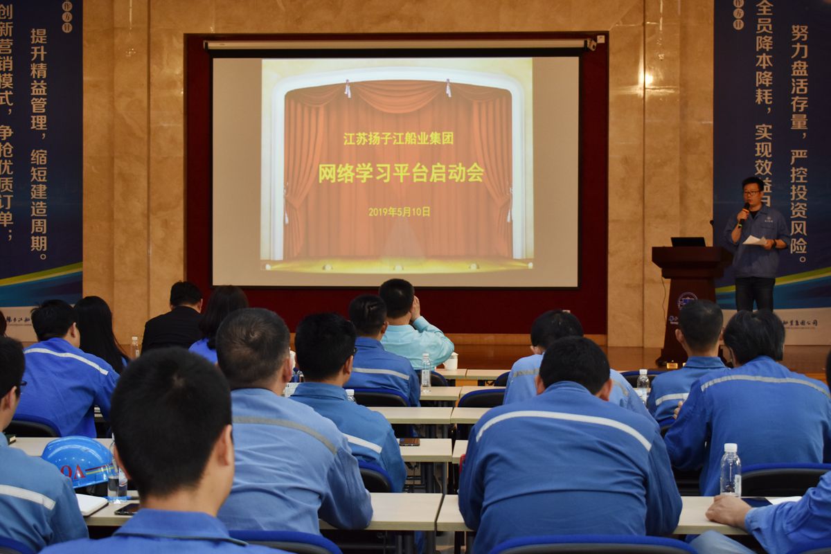 On the afternoon of May 9th and 10th, the group network learning platform kick-off meeting was held in Yangzi Xinfu and New Yangzi. 90 people from all departments of Yangzi Xinfu and New Yangzi shipyard participated in the kick-off meeting. Dr. Liang Zhongchen, Vice President of the School of Continuing Education of Jiangsu University of Science and Technology, Dr. Cui Xiangming, Vice General Manager Mr. Zhang Hongfei of our group attended the meeting and delivered the speech.